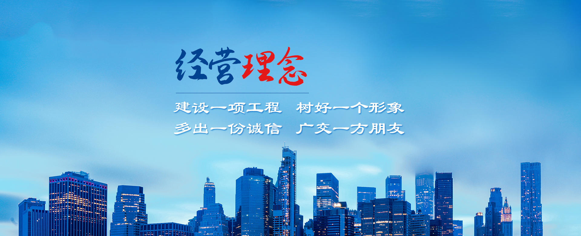 公司以建造合格建筑產(chǎn)品、助力國(guó)家建設(shè)為使命,以構(gòu)建幸福企業(yè)為愿景。公司深知助力國(guó)家建設(shè)為使命所擔(dān)負(fù)的責(zé)任,故以“如履薄冰、如臨深淵、高調(diào)精細(xì)做事、低調(diào)謙虛做人”為工作理念,建立了完善的管理制度和質(zhì)量保障體系,以人為本,構(gòu)建和諧環(huán)境。公司牢固樹立安全意識(shí)、文明意識(shí)、質(zhì)量意識(shí)、環(huán)境意識(shí)和精品意識(shí)。在公司質(zhì)量管理過(guò)程中貫徹“雙百”方針:即工程合格率100%,客戶滿意率100%。以“建設(shè)一項(xiàng)工程,樹好一個(gè)形象,多出一份誠(chéng)信,廣交一方朋友”為公司經(jīng)營(yíng)理念。